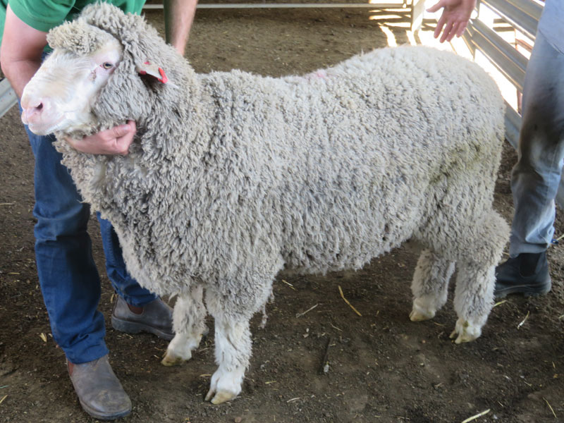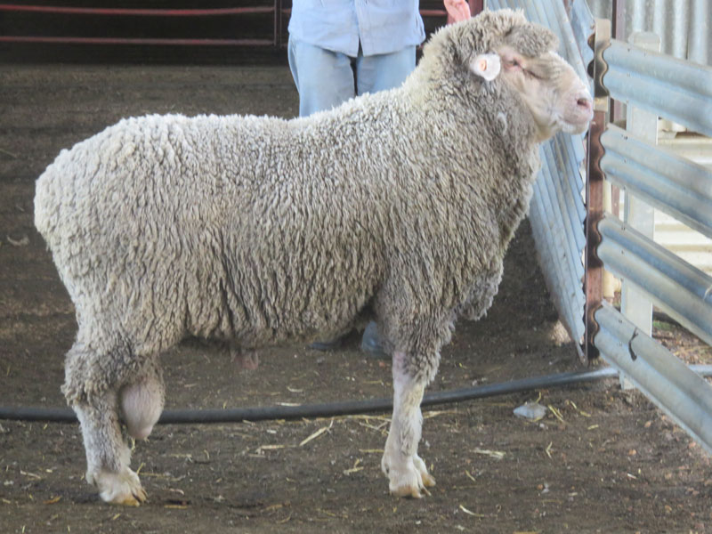 Challara Poll Merino Stud purchased the ram at the 2017 Classing Classic Sale at Murray Bridge in South Australia for $18,000. His sire was TW130381 who sold to Old Ashrose Merino Stud for $10,000 in 2014. His brother was sold to a ram breeder in NSW for $10,000 in 2015. He is a twin. The ram has a long body and a very sound structure, with a soft pliable skin. He also has a calm temperament.